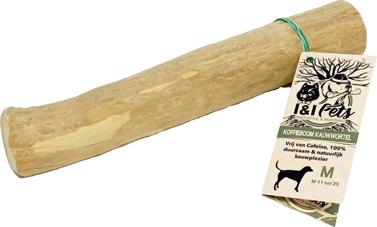 kauw wortel te laten spelen. Daarnaast is het belangrijk dat de kauw wortel wordt afgestemd op de bijtkracht van de hond. Honden die een sterke bijtkracht hebben kunnen de koffieboom kapot bijten. Het is daarom belangrijk dat je altijd toezicht houdt als je hond met dit kauwspeeltje