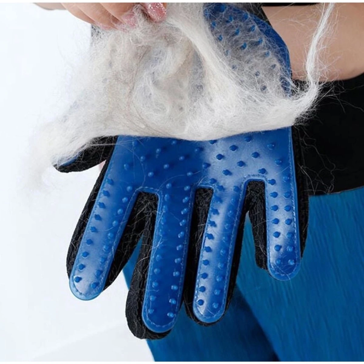 U moet enkel uw huisdier aaien: de handschoen houdt alle dode haren vast zonder het dier te verwonden! Geen rondvliegende haren meer! Het haar blijft in de handschoen plakken. U moet het er alleen uithalen en weggooien.