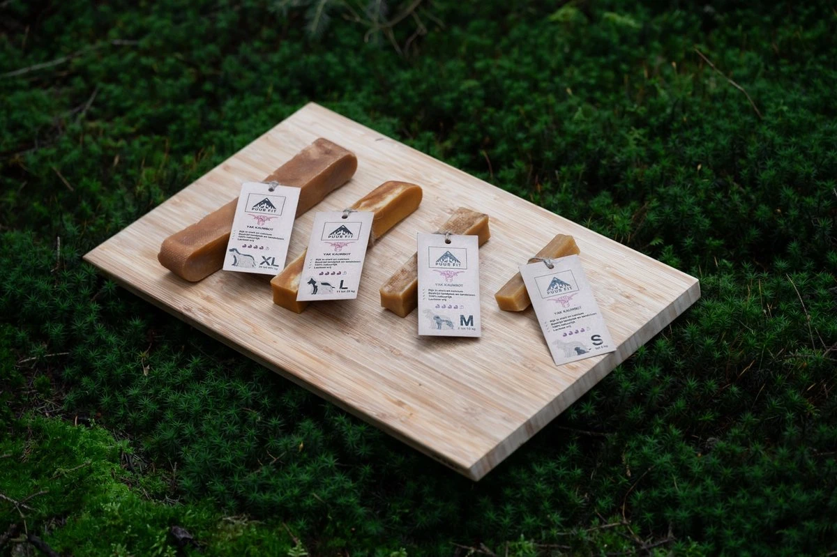 Op traditionele wijze wordt de melk gestold, gescheiden van water en geperst in jute (de afdruk vindt u vaak nog op de kauwbotten terug). Vervolgens worden ze gerookt, wat een geweldige smaak geeft. Ten slotte wordt de Yak kauwbot schoongemaakt, ondergaat een voedselkwaliteitscontrole in het laboratorium en wordt voorzien van een gezondheidscertificaat.