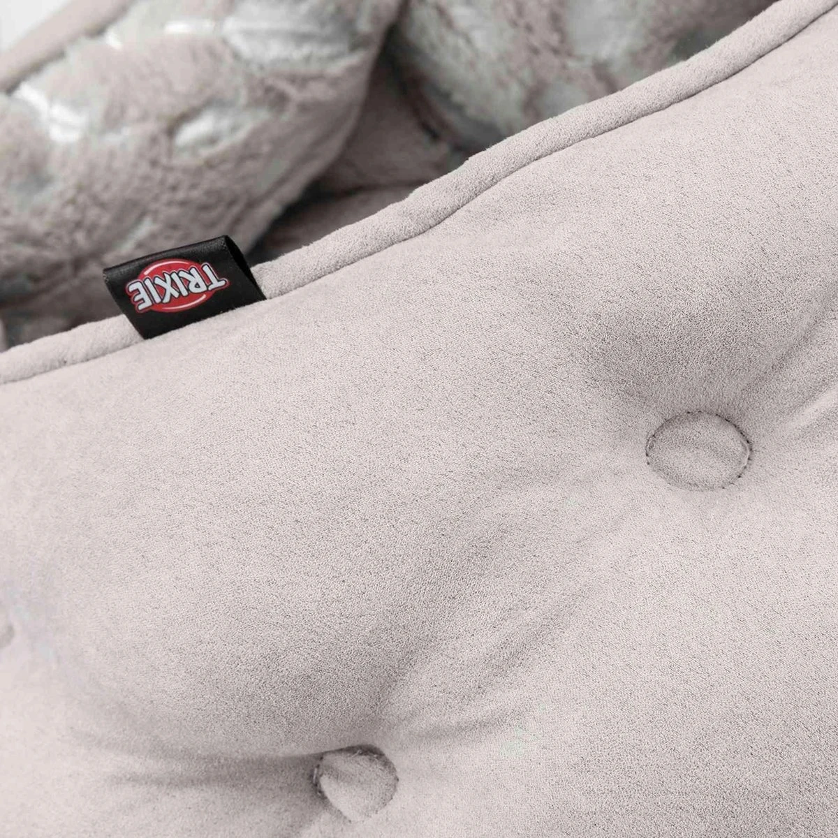 Schuilplaats feather is een zachte rustplek met zilveren veertjes print waarin uw kat heerlijk kan slapen. De plek heet een stevig geïntegreerd kussen en slipvaste onderkant. De schuilplaats is gemaakt met velours/pluche, polyester bekleding en polyestervlies vulling. Daarnaast is het doorgestikt en eenvoudig met de hand te wassen.